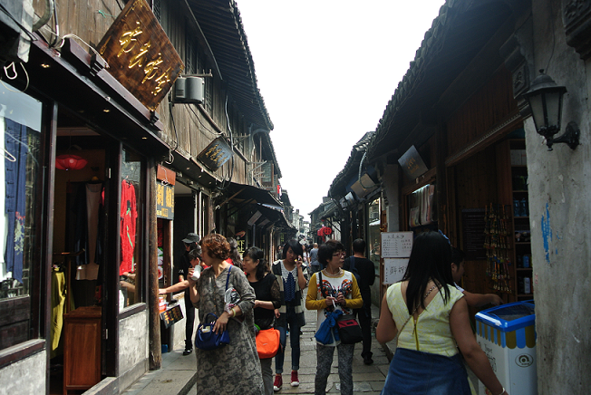 吃过午饭,我们便乘车前往乌镇。乌镇,江南四大古镇之一,早已越过了地域的界限进而名声远扬。夜晚的乌镇有着她别样的姿态,小桥流水、古街老巷、乌蓬船、木格窗、鳞次栉比的黛瓦、错落有致的白墙,斑斑驳驳的朱门,风雅古朴的茶楼,仿佛诉说着千百年来曲折的经历,更折射出一种古老不朽的文化。游览中不想下起小雨,细雨中欣赏着烟雨江南,更有一番风味,处处碧波荡漾,家家临水入影,让人不由自主地沉寂在历史的幽静里。